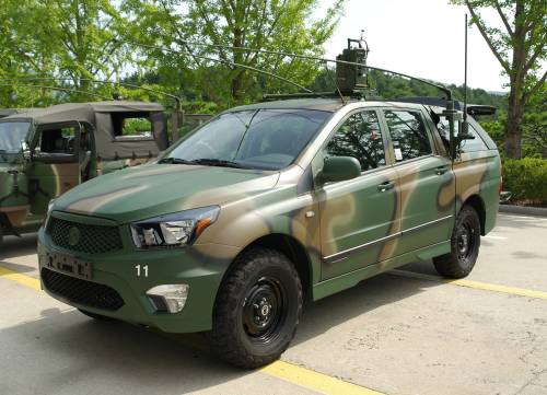 | 군에서 지휘 및 행정업무용으로 쓰이는 코란도스포츠. 일반차량을 그대로 쓰고 있어 방탄성능은 없다 |