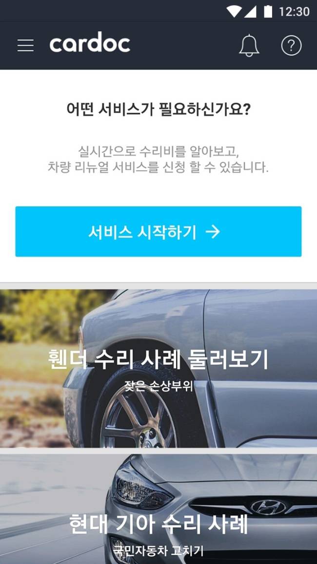 [헤럴드경제=박도제 기자] ‘찰칵, 찰칵, 찰칵.’ 아내가 주차하다 끍은 앞바퀴 펜더 사진을 찍어 스마트폰 애플리케이션인 ‘카닥(cardoc)’의 수리견적 요청서에 첨부했다. 구체적인 수리 요구사항을 기입하고, 차량 정보를 앱에 올렸다. 그로부터 5분이 지나지도 않아, 7만원이라는 견적서가 하나 올라왔다. 빠른 반응이 좋았다. 생각보다 저렴한 가격에 기분이 한결 가벼워지는 느낌이었다. 동네 카센타에선 10만원 정도 비용이 든다고 했다.