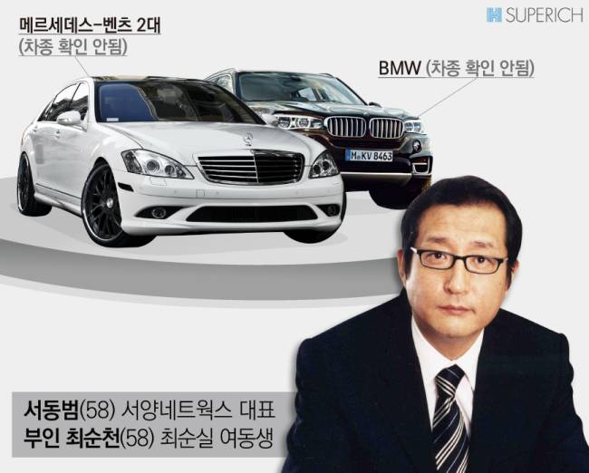 최순실 여동생 최순천(58) 가족도 주소지를 둔 서울 용산구 한남동 하이페리온 단지에서 메르세데스-벤츠 두 대와 BMW 한 대를 소유한 것으로 알려졌다.