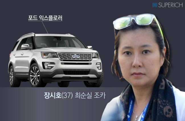 최순실의 영향력을 등에 업고 각종 이권을 챙긴 의혹을 받는 최순실 조카 장시호(37ㆍ장유진에서 개명) 씨는 과거 5000만원대인 포드 SUV 모델을 빌려 타고 다닌 것으로 알려졌다.