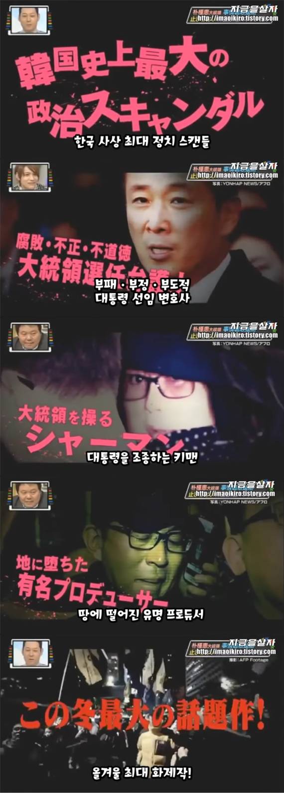 일본의 한 시사예능 프로그램은 ‘최순실 게이트’를 영화 예고편처럼 재구성해 방영했다.