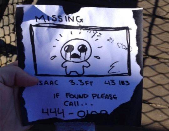 이미지의 중앙에는 '바인딩오브아이작'의 캐릭터 'The Lost'가 있고 그 주변에는 소년 8명의 그림자가 있었습니다. 하단에는 창세기 30장 35절의 문구가 적혀져 있고요.