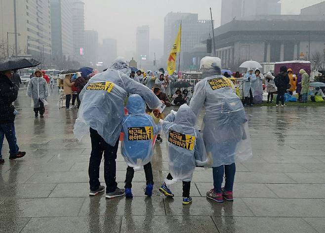 눈이 내리는 만큼 집회 참여 시민들은 우비 혹은 우산을 꼭 챙겨야 한다. 또 이와 함께 방수점퍼가 있다면 겉옷으로 챙겨두는 것이 좋다.
