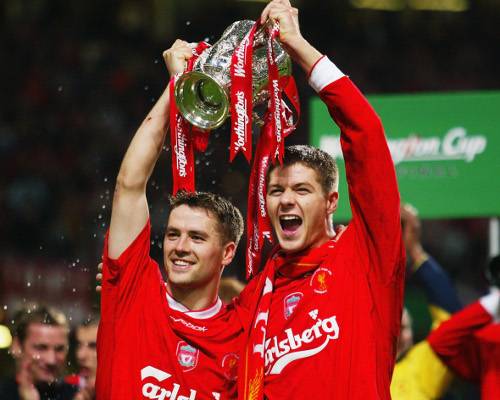 | ▲ 2000-2001 시즌 리버풀의 UEFA컵, 리그컵, FA컵 우승을 이끌었던 제라드.(오른쪽) |