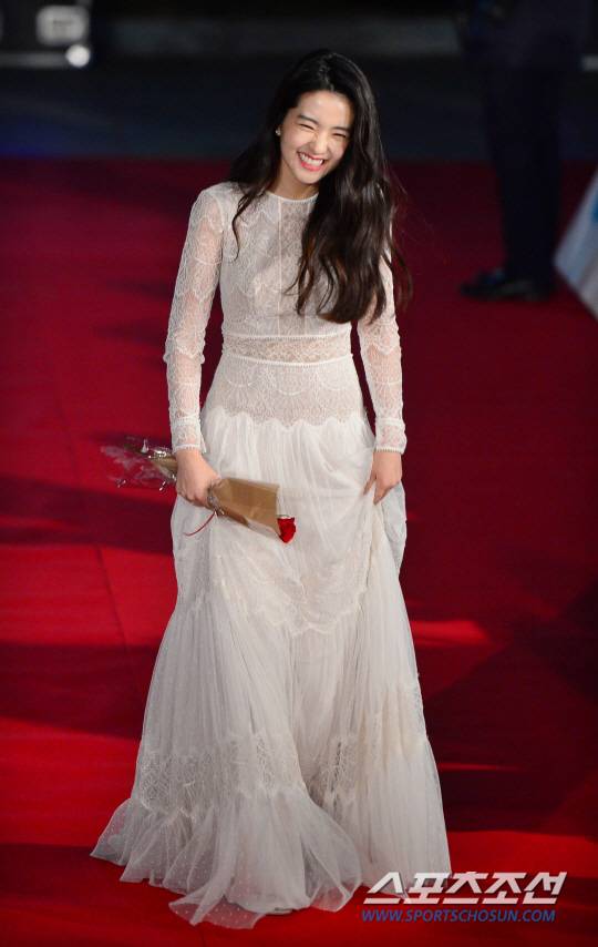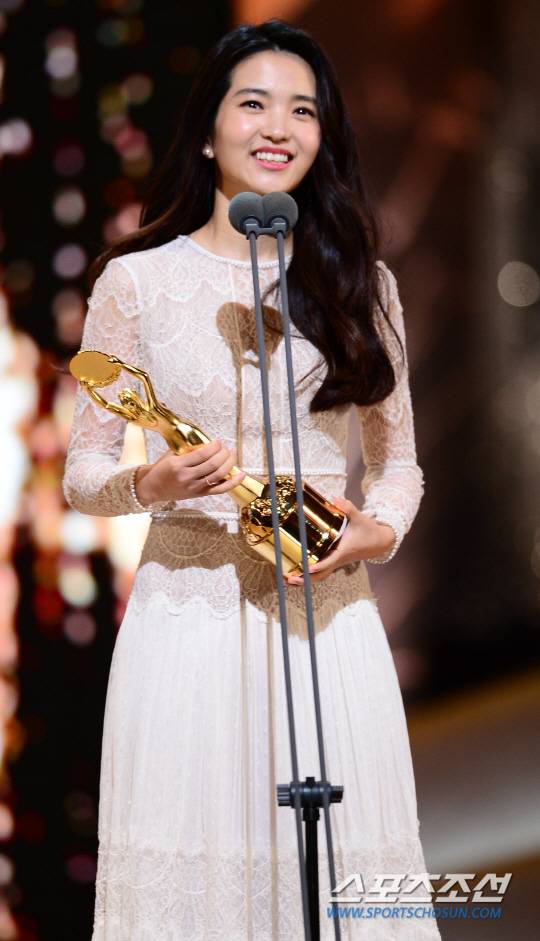 영광이 순간, 김태리는 청초한 화이트 컬러의 롱 드레스를 선택했다. 상체 부분 클래식한 무드의 레이스 패턴이 우아함을 한껏 풍긴다. 이날 김태리의 스타일링을 담당한 고민정 스타일리스트는 "전체적으로 태리가 본래 지니고 있는 맑은 소녀스러운 이미지를 그대로 살려 표현하려고 한 스타일이다"라고 설명했다.