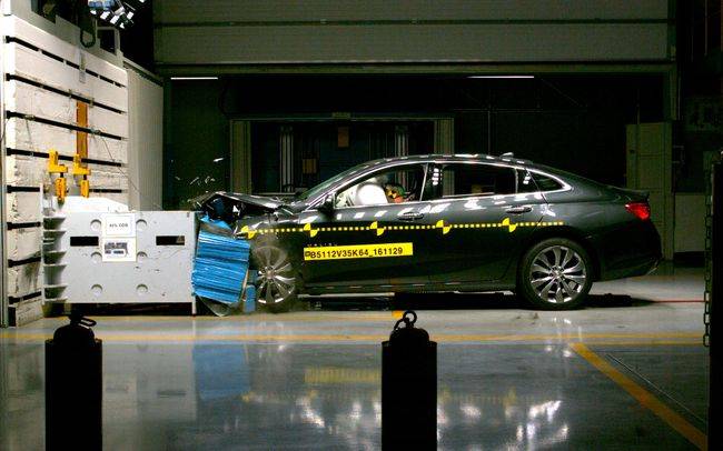 부평 지엠 기술연수소 내 충돌 실험실에서 이뤄진 충돌 테스트는 시속 65 km로 달리는 말리부가 충돌체에 정면의 좌측을 부딪히는 '40% 옵셋 부분 정면 충돌 실험(40% Offset Crash Test)'으로, 한국 신차안전도 평가(KNCAP: Korean New Car Assessment Program)와 동일한 조건을 갖고 테스트를 실시했다.
