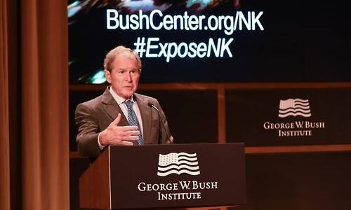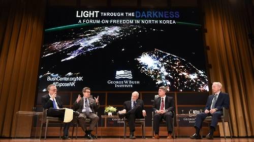 부시 전 대통령은 29일(현지시간) 미국 텍사스 주 댈러스에 있는 자신의 부시 대통령 센터에서 열린 '어둠을 관통하는 빛 : 북한자유포럼' 연설에서 북한의 위협을 경고함과 동시에 북한 주민의 인권에 관심을 기울여야 한다고 강조했다.