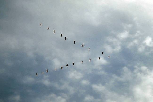 하늘을 올려다보니 새들이 V자 편대 비행을 하고 있었다. V자 편대 비행은 매우 과학적이면서 경제적인 비행법이다. 이렇게 비행을 하면 서로의 날갯짓으로 형성된 상승 기류가 홀로 날 때보다 빠르게 비행할 수 있도록 도와준다. V자 편대비행으로 유명한 새는 기러기이다. 기러기 편대는 매우 탄탄한 팀워크를 자랑하는 조직이다. 기러기들은 날면서도 늘 서로를 돕는다. 선두가 지치면 다른 녀석이 그 자리를 직무 대리한다. 대열 맨 끝의 기러기는 지속적인 울음소리로 선두를 격려한다. 지쳐서 낙오할 위기에 처한 녀석이 생기면 덜 지친 녀석들이 지친 녀석과 함께 땅으로 내려와 체력 회복을 기다린다. 소통과 협력의 중요성을 너무나도 잘 아는 조직이다. 복잡한 시국을 떠올리니 새들이 사람보다 낫다는 생각이 들었다.