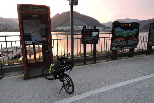 [HOOC=정진영 기자] 11월 16일. 자전거 국토종주 마지막 날의 아침 식사는 지난 밤에 먹다 남은 치킨과 컵라면이었다. 식사 시간을 줄이는 것은 여행 중에 생긴 습관이다. 길에서 다른 라이더과 똑같이 페달을 밟아도 미니벨로로는 움직이는 거리가 확실히 차이가 나니 말이다. 너무 어둡기 전에 목적지에 도착할 방법은 일찍 출발하고 식사 시간과 휴식 시간을 줄이는 방법 밖에 없었다. 점심도 국토종주 내내 길 위에서 간단한 음식으로 대신했다.