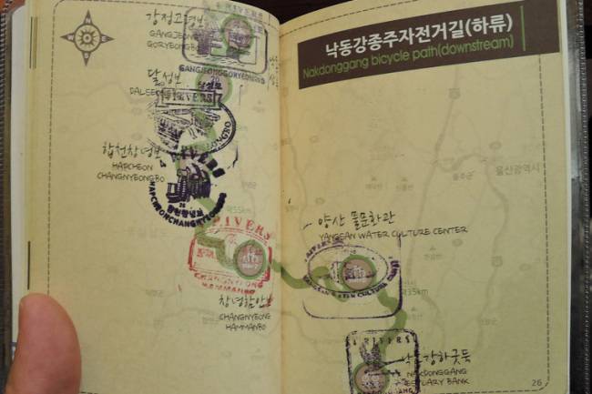 10㎞ 가량 페달을 밟자 ‘창녕함안보’ 인증센터에 닿았다. 자전거 국토종주 중에 가장 기분이 좋은 순간은 보가 보일 때이다. 보는 곧 인증센터를 뜻하기 때문이다. ‘창녕함안보’ 인증센터에 도착해 종주수첩에 인증도장을 찍자, 수첩에는 인증도장을 찍을 자리가 딱 두 곳만 남았다. 두 번만 더 도장을 찍으면 국토종주도 끝인 것이다. 창녕함안보를 벗어나기 직전, 국토종주 중 처음으로 표지판에서 부산이란 글자를 보았다. 마지막 날이란 게 실감이 났다.