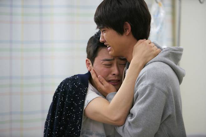 <형>의 첫 번째 명장면은 ‘두식’과 ‘두영’ 두 형제가 찰떡호흡으로 귀여운 사기를 치는 병원신이다. 동생 ‘두영’을 이끌고 옷을 사러 갔던 ‘두식’이 ‘두영’을 깔본 남자에게 복수하기 위해 병원에 입원해 펼치는 오버액션 사기극에, 이제까지 ‘두식’과 서먹했던 ‘두영’이 합류해 웃지 않고 볼 수 없는 코믹 눈물연기를 펼친다. ‘두영’의 “미안해, 나 때문에”에 이어 ‘두식’이 ‘두영’의 손에 슬쩍 얼굴을 들이밀며 외친 “나 여깄어 이 바보야!”는 곱씹을 때마다 미소를 걸게 하는 명장면으로 등극했다. 배우 조정석은 ‘두식’이 열연을 하는 틈에서도 “조금만 떨어져”라는 애드리브로 웃음을 더했다. 병원에서 나와서는 “연기 쩔더라”와 “너 닮았나보지”라는 대화를 나누며 형제가 조금씩 가까워지는 계기가 된 장면이기도 하다.