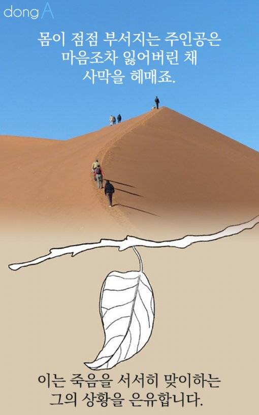 몸이 점점 부서지는 주인공은 마음조차 잃어버린 채 사막을 헤매죠.
