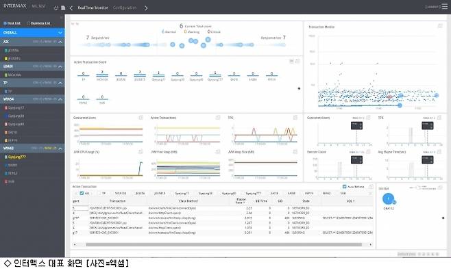 엑셈은 전구간·종단간(엔드투엔드) 성능관리(APM) 제품 '인터맥스(InterMax)'를 SK테크엑스에 신규 납품하고, 기존 구축된 경쟁 제품을 윈백(win back)했다고 6일 발표했다. 엑셈에 따르면, 인터맥스는 최초 사용자 요청부터 DB, 웹 서비스 전 구간의 성능을 구간별 응답시간 데이터를 통해 관리할 수 있는 솔루션이다. 엑셈은 올해 SK테크엑스 외에 주요 금융·공공기관에서 신규 수주를 이끌어냈고, 인터맥스를 납품해 경쟁사 제품을 윈백한 바 있다.
