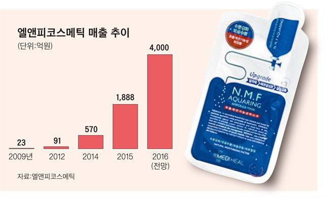 예감은 적중했다. 별다른 홍보 활동을 하지 않았는데도 엘앤피코스메틱의 마스크팩은 날개 돋친 듯 팔려나갔다. 2009년 23억원을 기록했던 매출은 2013년 91억원, 2014년 570억, 지난해 1,888억원으로 늘어났다. 올해 매출은 4,000억원에 달할 전망이다.