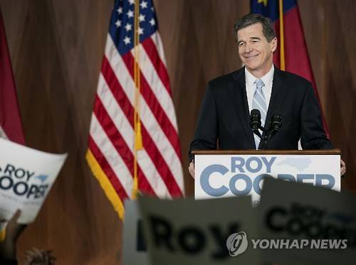 North Carolina Gov.-elect Roy Cooper speaks to a crowd of supporters a day after his opponent, incumbent Gov. Pat McCrory, conceded the election in Raleigh, N.C., Tuesday, Dec. 6, 2016. (AP Photo/Ben McKeown)