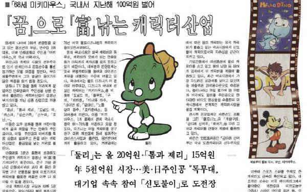 ■1996년 12월9일 미키마우스 100억, 둘리 20억, 톰과제리 15억…