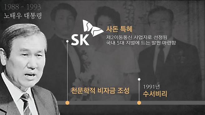 막대한 비자금을 제공한 대우, 삼성, 현대, LG 등은 정부로부터 다양한 영역에서 각종 특혜를 받았습니다. 특히 SK그룹은 노태우 정권 당시 '사돈 특혜' 로 급성장한 기업입니다.