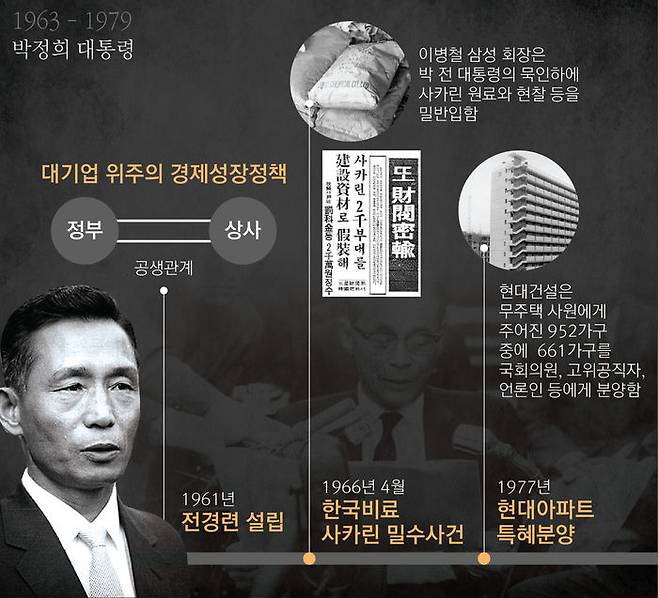 본격적인 정경유착의 뿌리는 박 대통령의 아버지인 박정희 전 대통령의 집권시기였던 1960년대로 거슬러 올라갑니다.