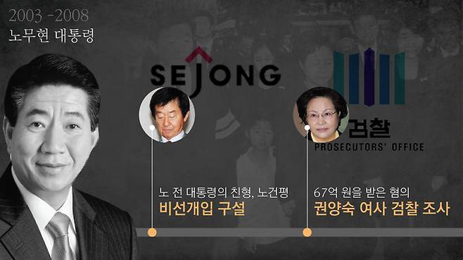 또 노 전 대통령의 친형 건평씨는 세종증권 매각 과정에 개입해 금품을 받은 혐의로 철창신세를 졌습니다. 건평씨는 세무공무원 출신으로 국세청 인사 때마다 '비선 개입' 구설에 올랐습니다.