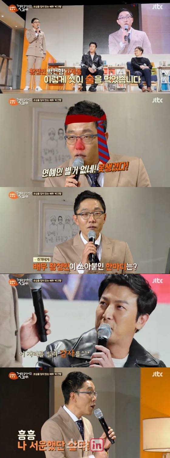 방송인 김제동이 배우 황정민, 박건형과의 술자리 일화를 밝혔다.
