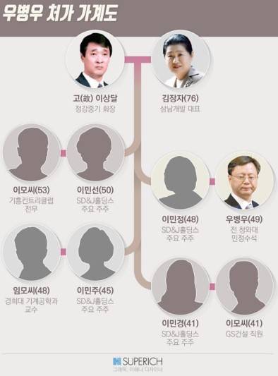 ![올 6월 30일 경기도 기흥컨트리클럽 청원별장에서 열린 고 이상달 회장의 8주기 추모식. 앞줄 맨 오른쪽은 고 이상달 회장 아내 김장자(76) 삼남개발 대표. 앞줄 오른쪽 세번째는 우병우(49) 전 민정수석 [출처=고령인터넷뉴스]](https://img1.daumcdn.net/thumb/R658x0.q70/?fname=http://t1.daumcdn.net/news/201612/12/ned/20161212100503491pocz.jpg)