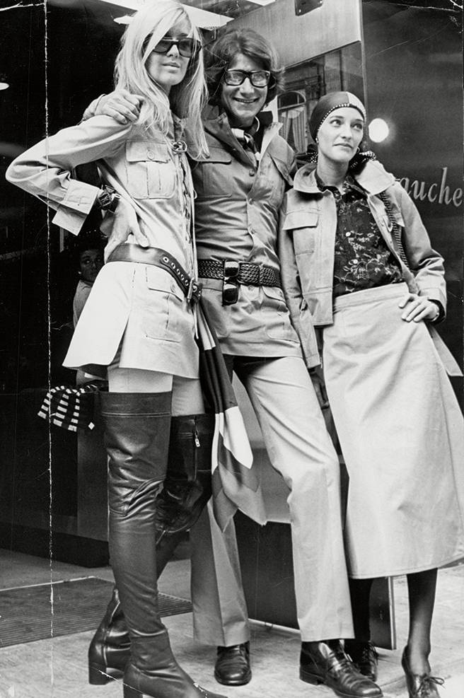1969Betty Catroux, Yves Saint Laurent, Loulou De La FAlaise.1969년 리브 고시 부티크 앞에서 포즈를 취한 베티 카트루와 이브 생 로랑, 룰루 드 라 팔레즈. 꼭 닮은 사파리 룩의 세 사람은 그야말로 파워플한 크루였다. ‘넌 나고, 난 너야’라는 노래 가사처럼 이브는 베티를 자신의 쌍둥이라 부르곤 했다. “우리는 둘 다 마르고 창백하며 중성적인 면모를 가지고 있죠. 그리고 곧잘 비슷한 옷차림으로 등장하곤 해요. 팬츠 수트, 점프수트, 사파리 앙상블 같은 것들 말이에요.” 60년대 르 스모킹의 완벽한 뮤즈였던 베티는 이브와 끊임없는 세계 여행을 다니며 이브 생 로랑 컬렉션을 에스닉의 세계로 인도했고, 룰루와의 만남은 여기에 가속도를 붙였다. 그녀의 독보적인 보헤미언 스타일과 방대한 의상 컬렉션에서 이브는 컬렉션의 영감을 찾았다. 베티가 생 로랑과 ‘노는’ 즐거움을 추구했다면, 룰루는 일까지 함께한 동반자였다. 그녀는 1972년부터 이브가 은퇴한 2002년까지 이브 생 로랑의 액세서리와 주얼리 디자인을 담당했다.