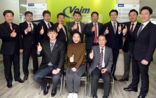 금융장비와 신분증 전용 스캐너, SW전문기업인 보임테크놀러지 김상범 사장, 최요승 사장과 직원들이 파이팅하고 있다.