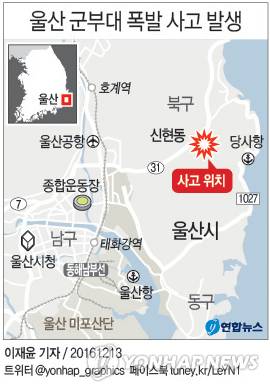 ![울산 군부대 폭발로 화상 입은 군인 (울산=연합뉴스) 13일 울산 군부대 폭발로 얼굴에 화상을 입은 군인이 울산시 북구 울산씨티병원 응급실에서 치료를 받고 있다. [경상일보 제공=연합뉴스]](https://img3.daumcdn.net/thumb/R658x0.q70/?fname=http://t1.daumcdn.net/news/201612/13/yonhap/20161213154919836edbb.jpg)