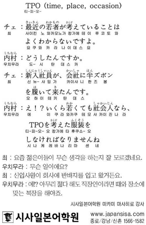 [시사일본어학원의 초단기 일본어 회화] TPO(time, place, occasion)
