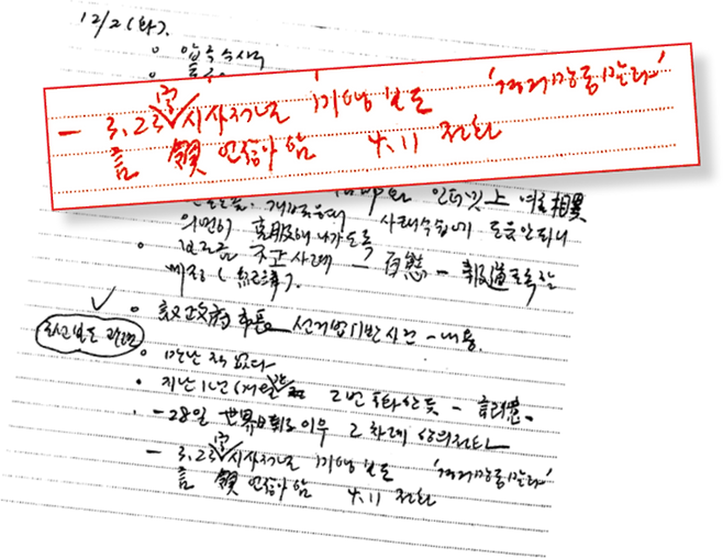 비망록을 보면 김 전 실장은 비선실세 국정 농단 사태의 책임을 면하기 어려워 보인다. 현재 김 전 실장은 직권남용 혐의로 입건된 상태다. 특검 역시 김 전 실장을 면밀히 수사한다는 입장이다. 김 전 실장은 2014년 11월29일 수석비서관회의에서 “공(功)은 쉬 잊혀지고 과(過)는 오래 남는다. 공인의 과는 특히 오래 남는다. 눈이 쏟아질 때는 빗자루로 쓸 수도 없다”고 말했다. 김 전 실장 본인의 말처럼 잘못이 있다면 책임을 피하지 못할 것이며, 역사 또한 이를 기억할 것이다.