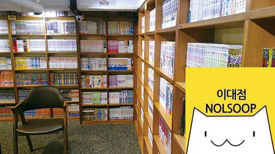 만화카페 브랜드 놀숲. 만화를 보는 휴식 체험 공간이 되기도 하고, 데이트도하고, 군것질도 하는 문화공간이 되기도 한다. 카페형 구조로, 과자나 한 끼 식사를 팔기도 한다. 골방에 들어서는 순간, 다른 사람들의 시선에서도 해방이 된다. 원하는 만화책이 있으면 신청란에 남겨볼 것.