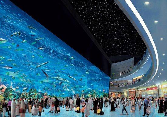 두바이 아쿠아리움은 세계에서 가장 큰 수족관 중 하나다. 3만3000여종의 어류가 1000만 리터의 물 속에서 자유롭게 헤엄치는 모습을 볼 수 있다.