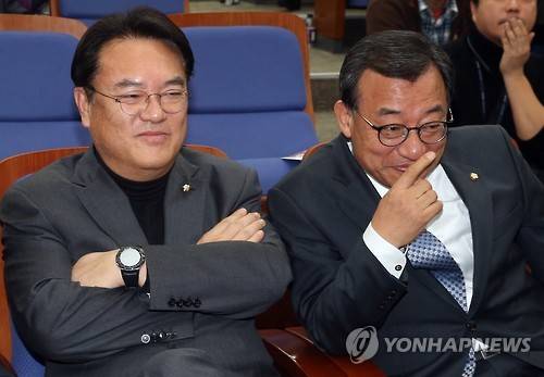 사진은 이날 국회에서 원내대표 경선이 치러진 의원총회에서 이정현 대표(오른쪽)와 정진석 원내대표가 개표 도중 웃음짓는 모습. 2016.12.16