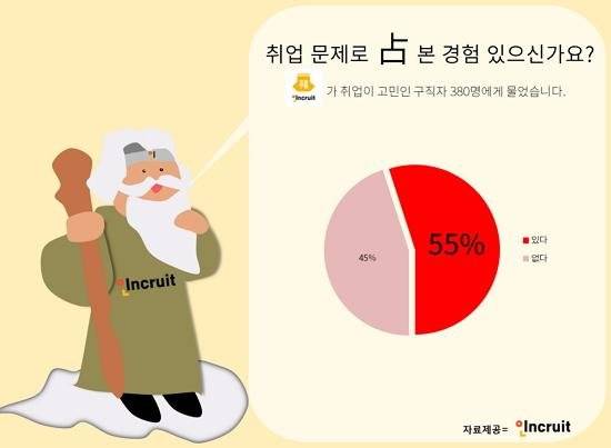 취업준비생들은 입사지원서를 제출할 때 언제 내는 것이 좋을까 걱정하게 된다. 입사지원서를 언제 제출하는 것이 좋을 지, 면접은 언제 보는 것이 좋을지 고민이다. 결정을 잘하지 못하는 취업준비생들을 위한 취업운세 서비스가 없을까?