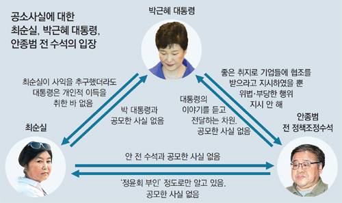 朴대통령-최순실-안종범, 서로 짜맞춘듯 '공모관계 모르쇠'