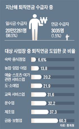 퇴직연금 도입한 사업장 27%, 음식·숙박업은 가입률 고작 6%