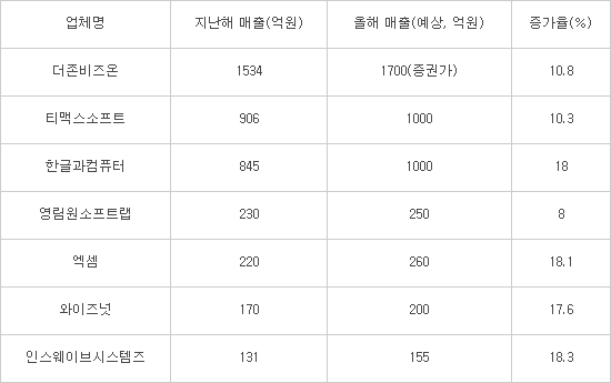 [표]주요 패키지SW업체 올해 매출 예상, 업계 취합