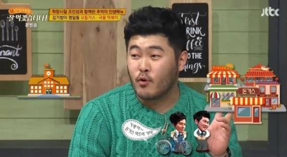 김기방은 절친 조인성과의 추억이 담긴 음식을 소개했다. 조인성과 고등학교 1학년때 같은 반이었다고 밝힌 그는 명일동 돈가스 모둠세트, 국물 떡볶이를 ‘인생메뉴’로 선택했다.