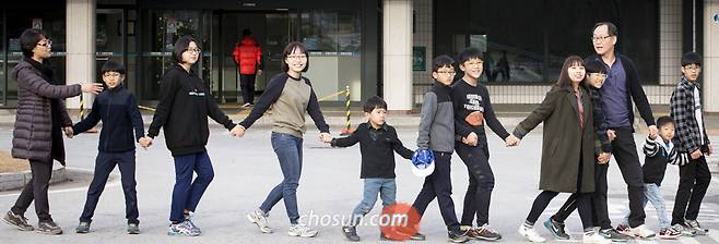 서로 같은 상처를 가진 아이들이 서로를 보듬길 10여 년. 엄마 윤씨는 "이제는 방 세 개짜리 교회 사택에서 복작복작 엉겨 사는 '진짜' 가족이 됐다"고 했다. 이제 12명의 가족은 자신들이 느끼는 행복을 남에게 나누기 위해 노력하고 있다. 지난 2011년부터 강릉아산병원 원목(院牧·병원교회 목사)으로 일하는 김씨는 교회에서 주는 월급 200만원 중 100만원을 환자들을 위해 기부한다. 남은 100만원 중 50만원도 매주 독거노인들에게 전달하는 반찬 재료 구입과 겨울철 연탄 봉사 비용으로 쓴다. 가족 생활비는 나머지 50만원이 전부다. 자녀 1명당 월 15만원씩 나오는 입양 아동 양육 수당은 전액 아이들 각자 명의로 저축하고 있다. 윤씨는 "옷은 이웃에게 얻어 입히고, 아이들이 휴대폰도 쓰지 않으니 절약하면 50만원으로 살 수 있더라"고 했다. 돈 많이 버는 것은 애당초 이 가족과 동떨어진 얘기다. 윤씨는 지난 10월 발간한 가족 이야기를 담은 책 '사랑은 여전히 사랑이어서' 인세도 전액 기부할 계획이다.