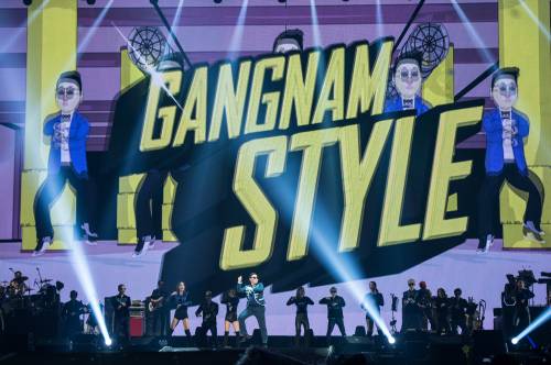 이어 싸이는 ‘새’, ‘아버지’, ‘나팔바지’, ‘젠틀맨’ 등을 부르며 관객들의 환호성을 이끌어냈다. 특히 전세계적인 인기를 누린 사상 최대 히트곡 ‘강남 스타일’ 무대에선 모두 ‘말춤’을 따라 추며 공연을 즐겼다.