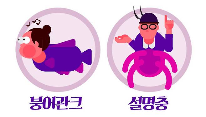 '폰딧불'은 폰과 반딧불이 합쳐진 말인데요, 핸드폰 액정 불빛으로 다른 사람들의 시선을 빼앗는 관객을 말합니다. '소리 방해꾼'에는 '붕어관크'와 '설명충'이 있습니다.