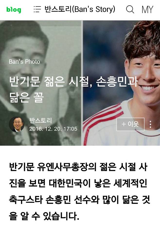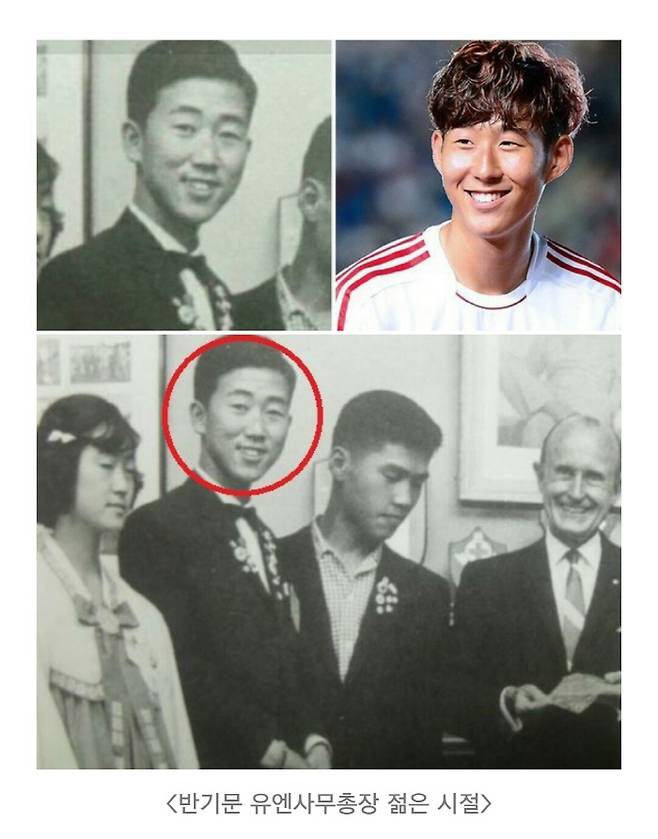 반기문-손흥민 커넥션 특종(?) 이라구요? 어, 근데 반기문 총장 젊은시절이 정말 손흥민 선수 모습과 닮았네요. 혹시 집안 어르신이라도 되나요?