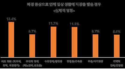 그 이유로는 피부색, 탄력 및 체중 증가와 같은 외모 변화(13.4%), 수면장애 및 불면증(11.7%), 관절통/근육통(11.5%)과 같은 신체적 영향 뿐 아니라 일상생활 의욕 저하 및 무기력함(9.8%), 부부관계 욕구 저하(9.8%)와 같은 정서적 측면으로도 다양하게 나타났다.