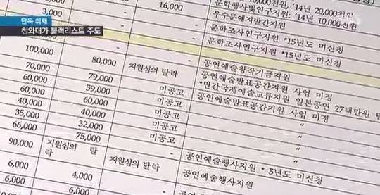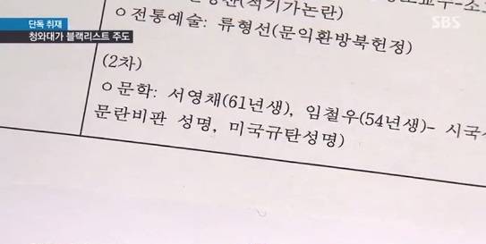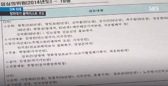 청와대 주도로 작성한 것으로 보이는 문화계 블랙리스트가 방송을 통해 공개됐다.