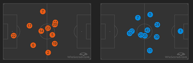 반면 후반전, 변화무쌍한 전술 변화가 예상된 과르디올라 감독의 첫 번째 교체는 경기 종료 4분 전에 이루어졌다. 오늘 맨시티 교체 명단에 공격 유닛은 나바스와 이헤아나초가 전부였다. 두 선수가 경기 막판 연속으로 투입되며 맨시티는 3412 포메이션으로 변화를 꾀했다. 하지만 반응을 기대하기엔 시간이 너무 부족했다.