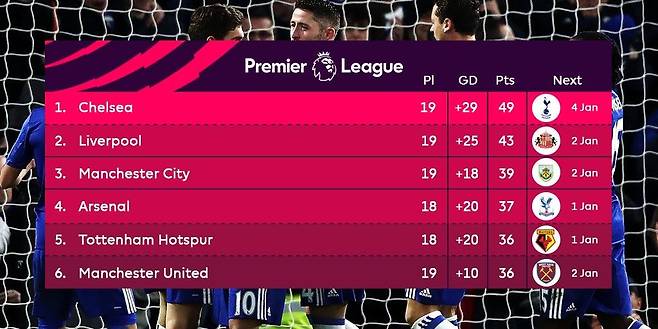 박싱데이의 시작이였던 지난 18라운드는 상위 6개 팀이 모두 승리하며 순위표에 변화가 없었지만 오늘 경기의 결과로 리버풀과 맨시티의 승점은 넉점차로 벌어졌다.