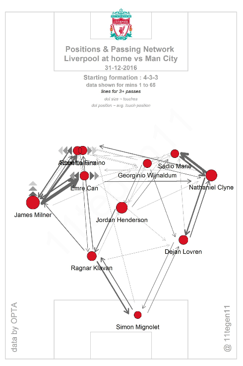 확실히 안필드에서 리버풀은 더 강하다. 리그 19라운드 현재 홈에서 7승 2무, 모든 대회로 범위를 확대하면 작년 1월 스토크시티와의 리그컵 패배 이후 24경기동안 홈에서 패하지 않았다. 전반전, 리버풀은 공수 모든 상황에서 맨시티보다 좋은 형태를 유지하며 공수 간격을 최소화하며 공간을 최대한 압축시켰다. 맨시티가 1차 빌드업을 시도할 때, 모니터 화면 안에 양 팀의 모든 필드 플레이어가 다 보일 정도로 간격이 압축되었다. 보통 이런 상황에서는 공을 갖고 있는 팀이 더 부담을 느끼는 경우가 많다. 발 밑에 있는 공을 처리하기 위해서는 판단을 해야 하는데, 판단을 하려면 우선 생각 할 시간이 필요하다. 하지만 리버풀은 맨시티가 활동 할 수 있는 공간을 잘 압축시켰고 상황 인식을 위해 생각 할 수 있는 시간적 여유까지 빼앗아버렸다.