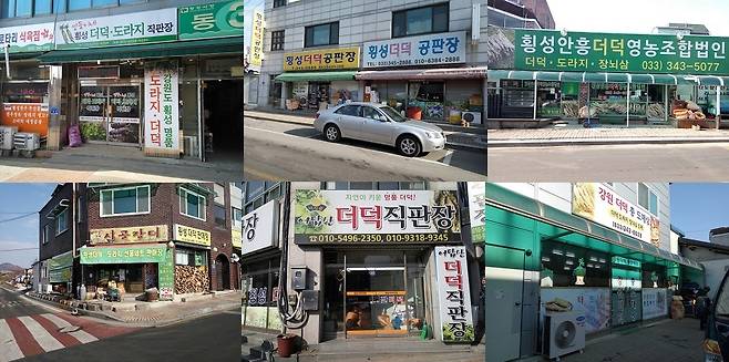"횡성더덕은 횡성더덕상인연합회가 30여개의 개별 판매장에서 영농조합 법인 형태로 생산 및 판매를 하고 있습니다. 그리고 횡성시내 농특산물 직거래 센터는, 횡성군 전체 농업인들의 농산물 판매확대 및 홍보를 지원하게 되어 여러 품목이 같이 유통되고 있는 것 같습니다."
