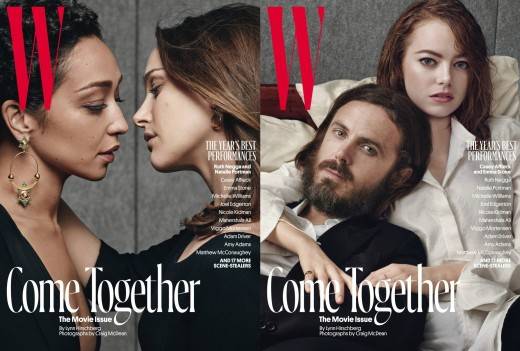미국판 W매거진은 영화배우를 테마로 한 다양한 버전의 2월호 표지를 공개했다. 지난해 미국 영화계에서 연기로 두각을 나타낸 배우들이 총출동했다. 주요 영화 시상식의 배우상 후보들이 커버 모델로 나선 것.