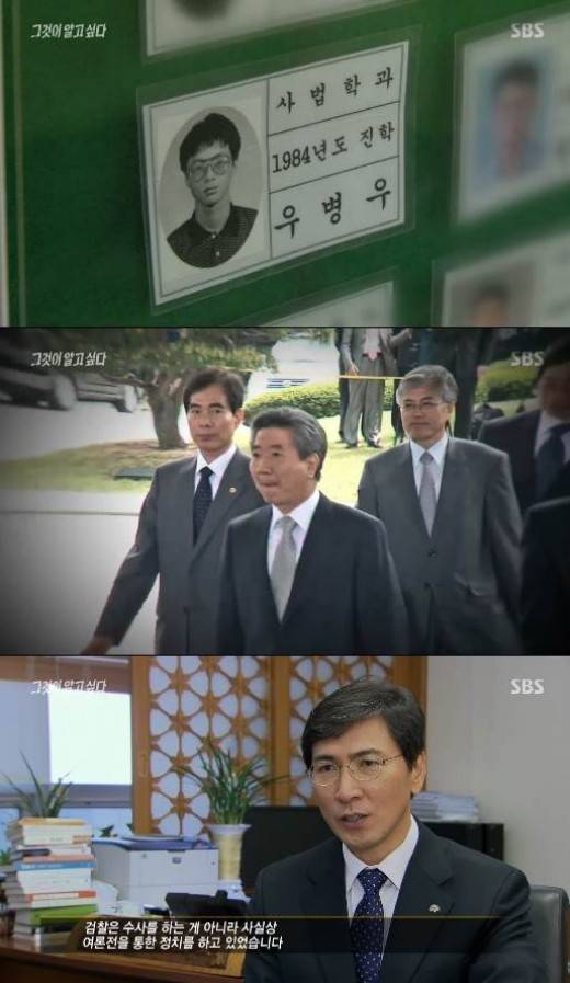 이날 제작진은 우병우의 지난날을 따라가 보았다. 우병우의 고교 동창은 “공부밖에 몰랐다. 당시에 검사까지 올라간 사람은 그 친구 밖에 없었다”고 밝혔다. 다른 동창은 “고등학교 이사장이 (서울대학교) 등록금을 다 내줬다”고 덧붙였다.